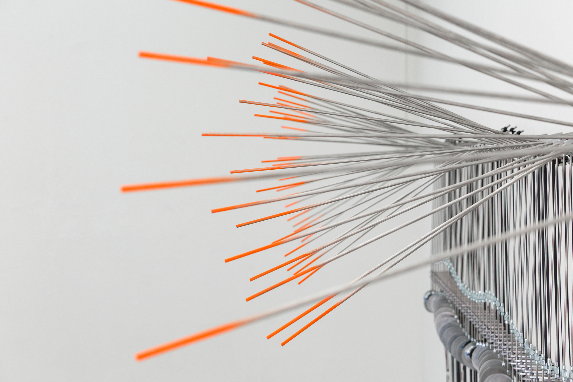 With his recent works Rhombi movens [2015] and Linearis Objectum [2016] Paaijmans focusses on the drawing line, deploying it as an autonomous object. These installations both play with the eye of the beholder, using composition, linear perspective and shadow to create abstract patterns of line arrangements. With these works he has further developed the scale of his work from sculpture to installation.